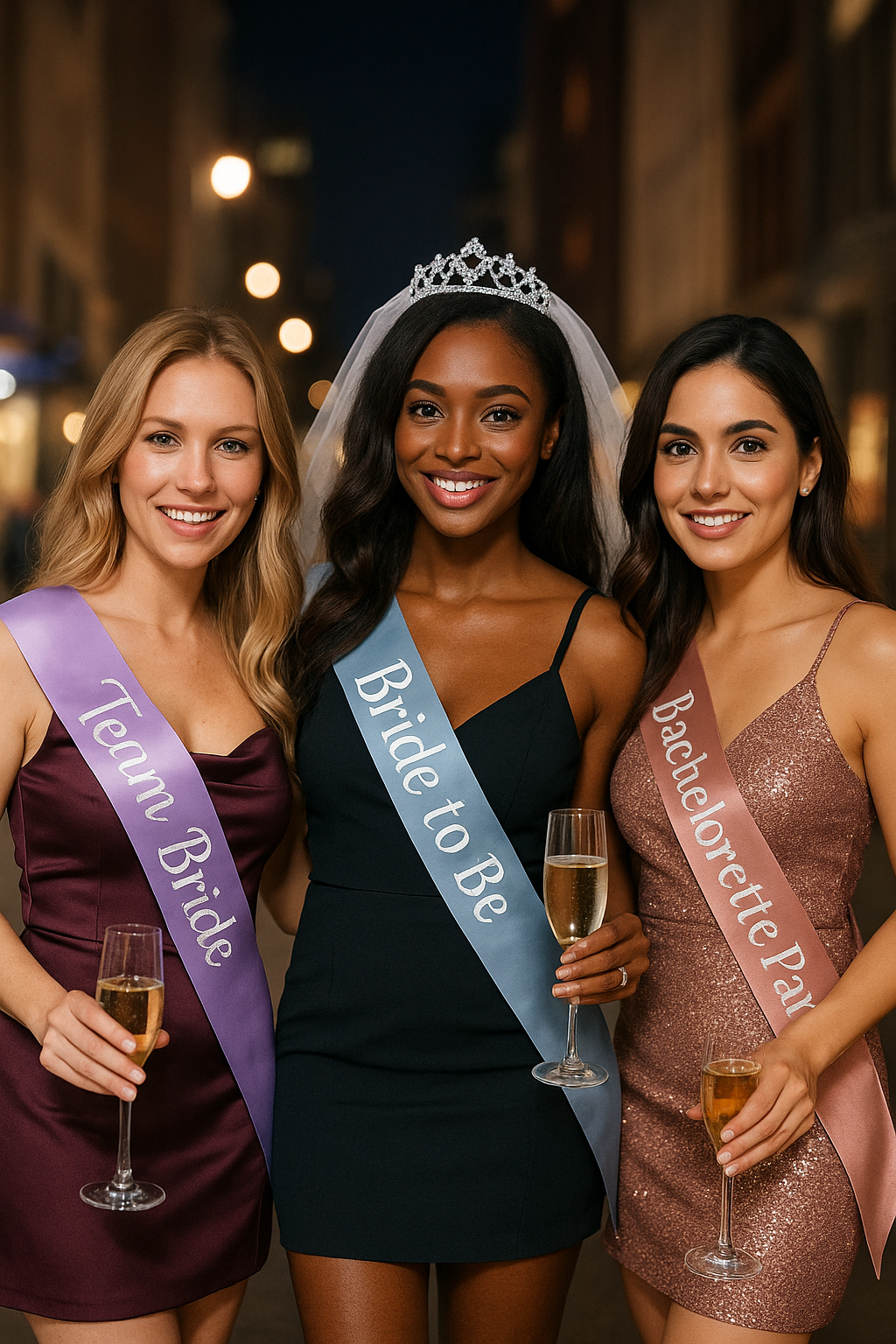 Turn your bridal celebration into an unforgettable moment with our Bridal Party Sashes, beautifully crafted with care in the USA. Each sash is made from luxurious satin ribbon and available in both non- glitter and glitter imprint options, giving you the perfect balance of elegance and sparkle. Choose from a variety of colors to coordinate your entire bridal crew from the Bride to Be and Maid of Honor to every member of your Team Bride. Perfect for bachelortte parties, bridal showers, engagement celebrations, and destination weddings, the sashes are designed to photograph beautifully under any lighting. Elegant satin. Custom colors. Crafted for unforgettable celebrations.